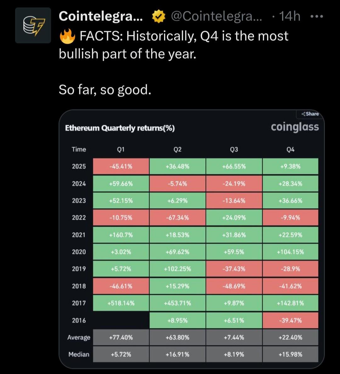 MichaelAischmann on October 6, 2025 8:33 am Going by the time of the year is superstitious nonsense. I’m bullish, but not *because* of Q4.