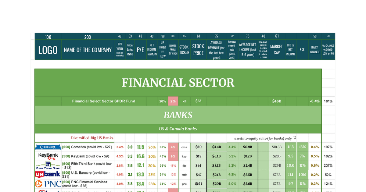 I thought Iβd share a Google Sheets watchlist that tracks a large number of companies – itβs been updated recently and now includes 3,000+ companies organized by sector and industry. The sheet shows live stock prices, 52-week highs/lows, market cap, daily changes, dividend info, average revenue and net income estimates, LTD-to-average-earnings ratios, ROE ratios, and more.