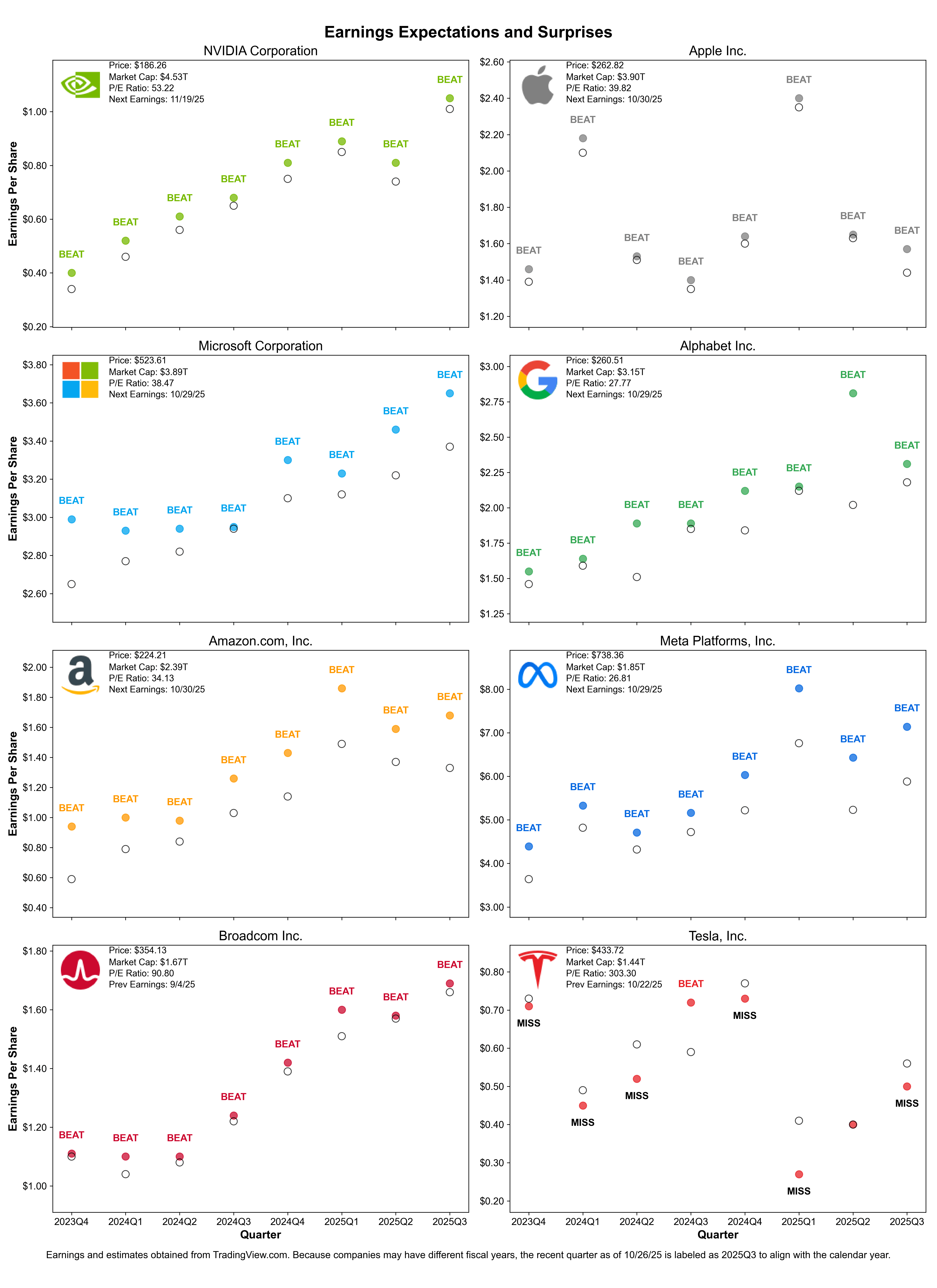 All five–along with Nvidia and Broadcom–have beaten EPS estimates for each of the last 8 quarters. But will they beat by enough to satisfy the street, which often has higher "whisper numbers" because of how consistently they beat?