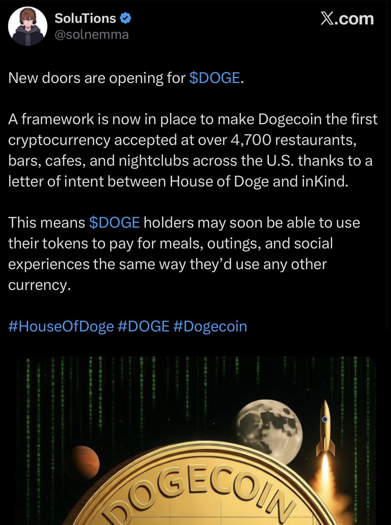 They’ve been saying this every week for years. Truth is any business can accept doge right now if they wish to