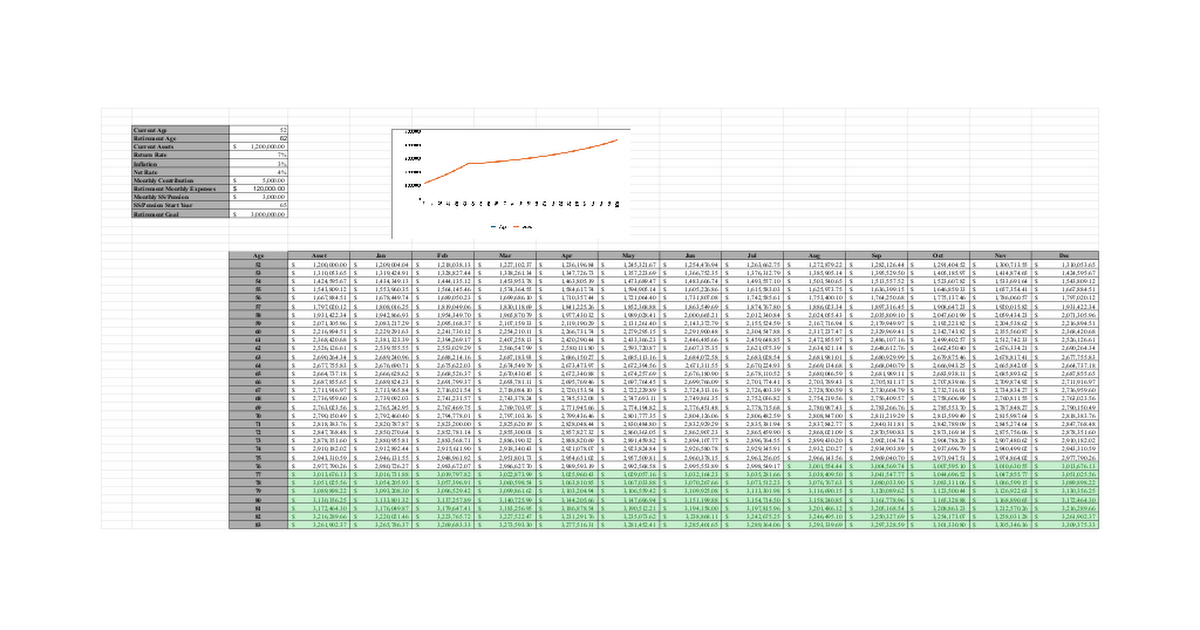 Asset Growth Projection: The calculator grows your assets month-by-month, taking into account contributions, investment returns, and inflation.