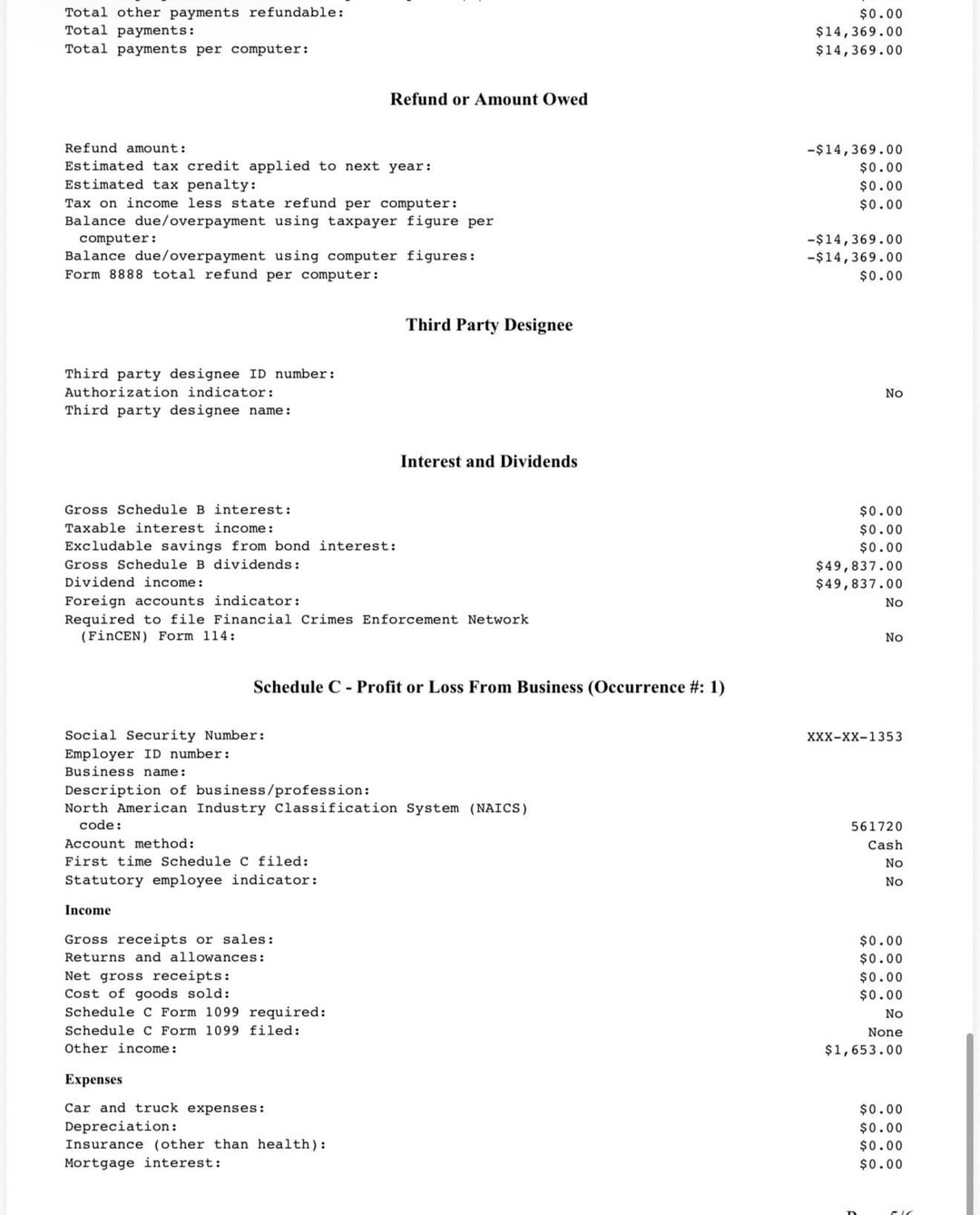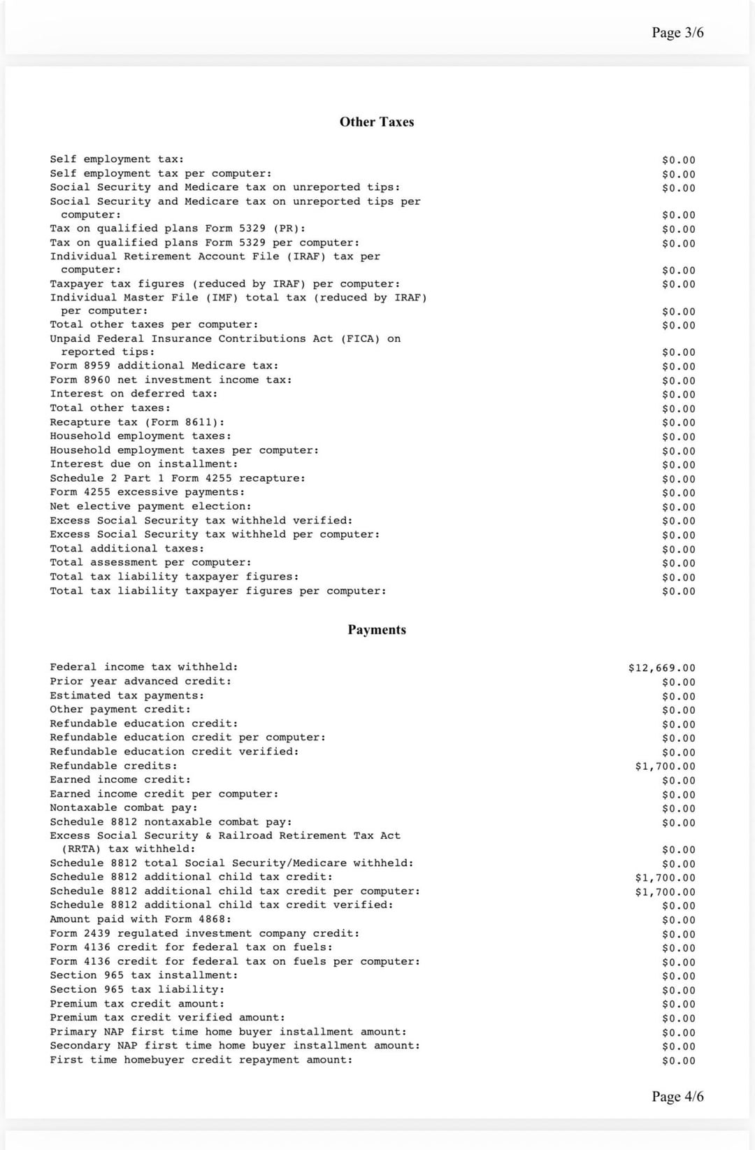 I also noticed the PDF says: “Balance due/overpayment using computer figures: -$14,369.” Does this mean the balance zeroes out and she won’t get any refund, or does it mean she owes that amount?