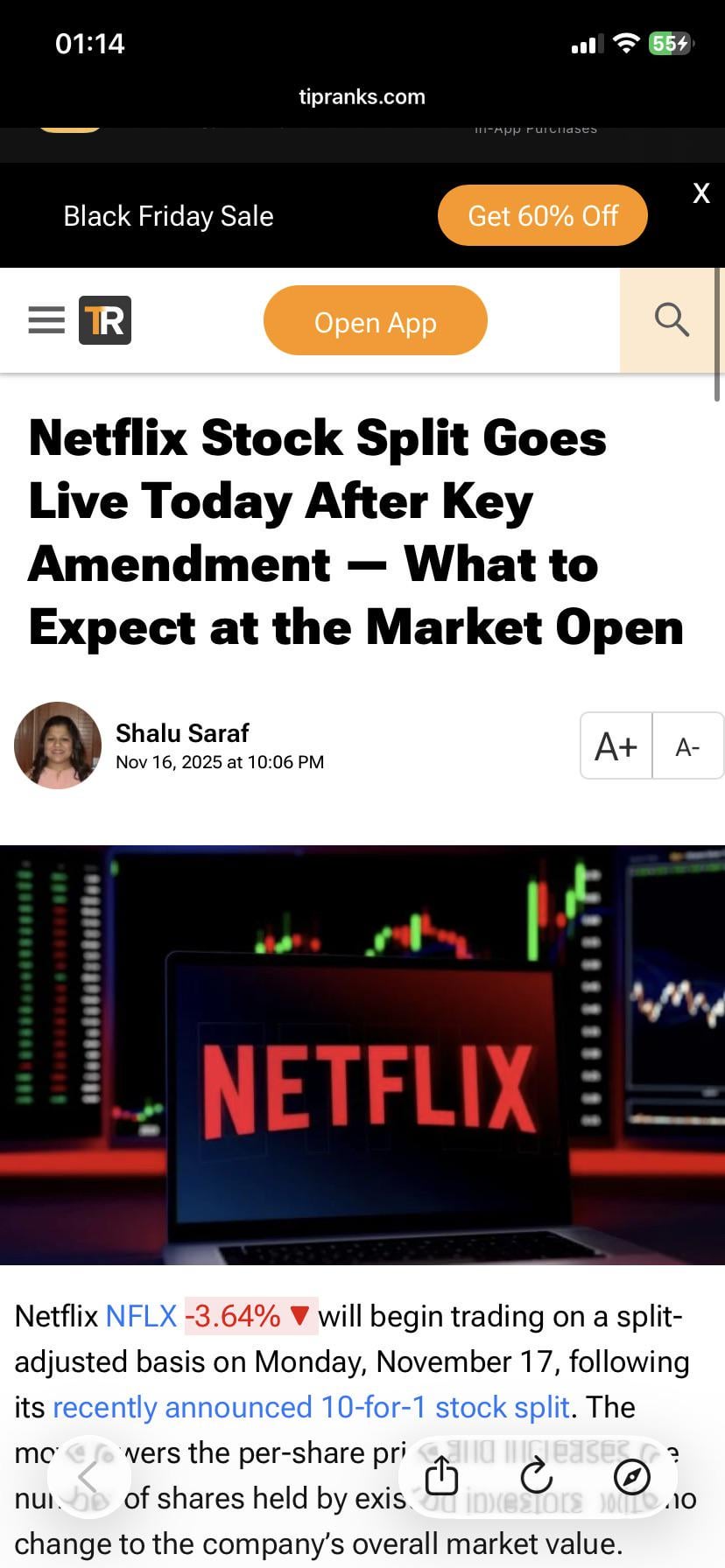 1. The amount of people I know who think the cheaper the stock price the better the deal is shocking so Netflix is probably going to go up from here.