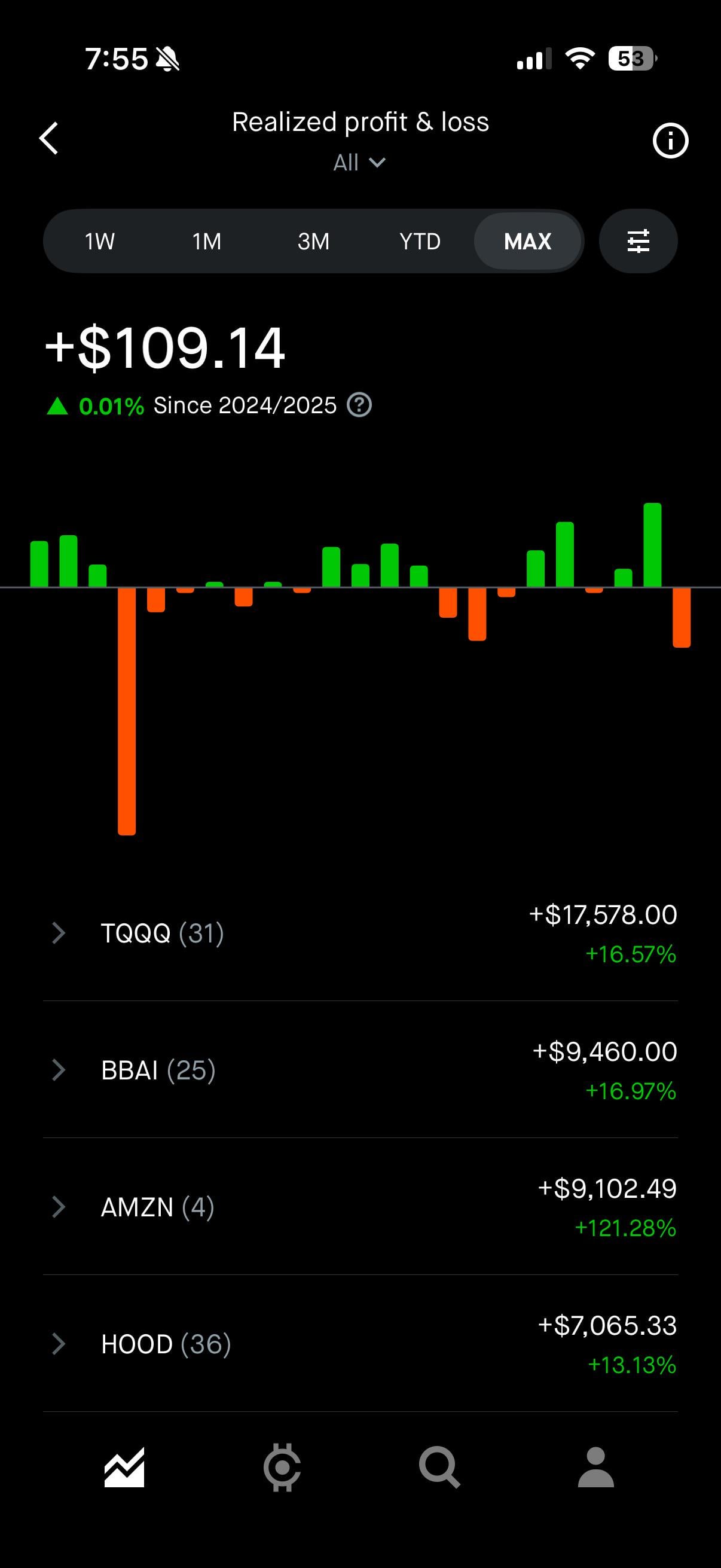 bro shows +50k realized gains just to be up 0.01% all time this is wsb