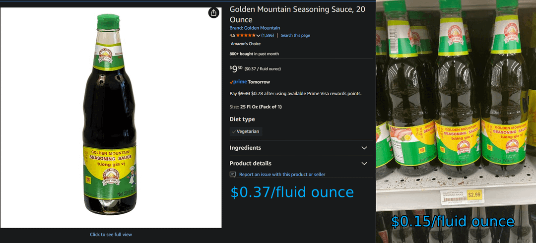 Also note that most of these items are "Amazon's Choice", which is supposed to be some reassurance that you're getting the best deal (I think), but alas, just look at how you get fleeced when you don't cross-shop locally or elsewhere. .