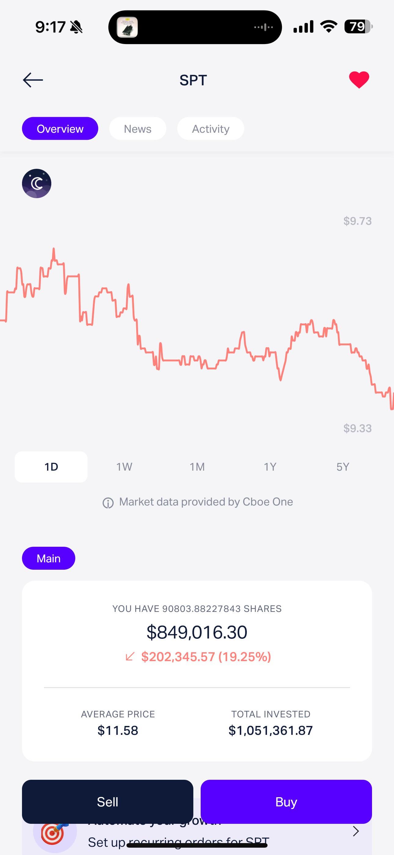 One million dollars bet on $SPT, down 20%, will hold till 25$