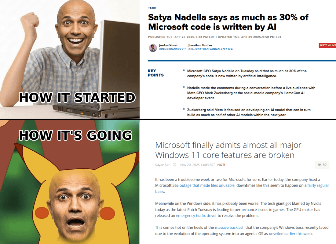 Windows 11 was released before they were using ANY AI to code… more redditors with no critical thinking celebrating in this post