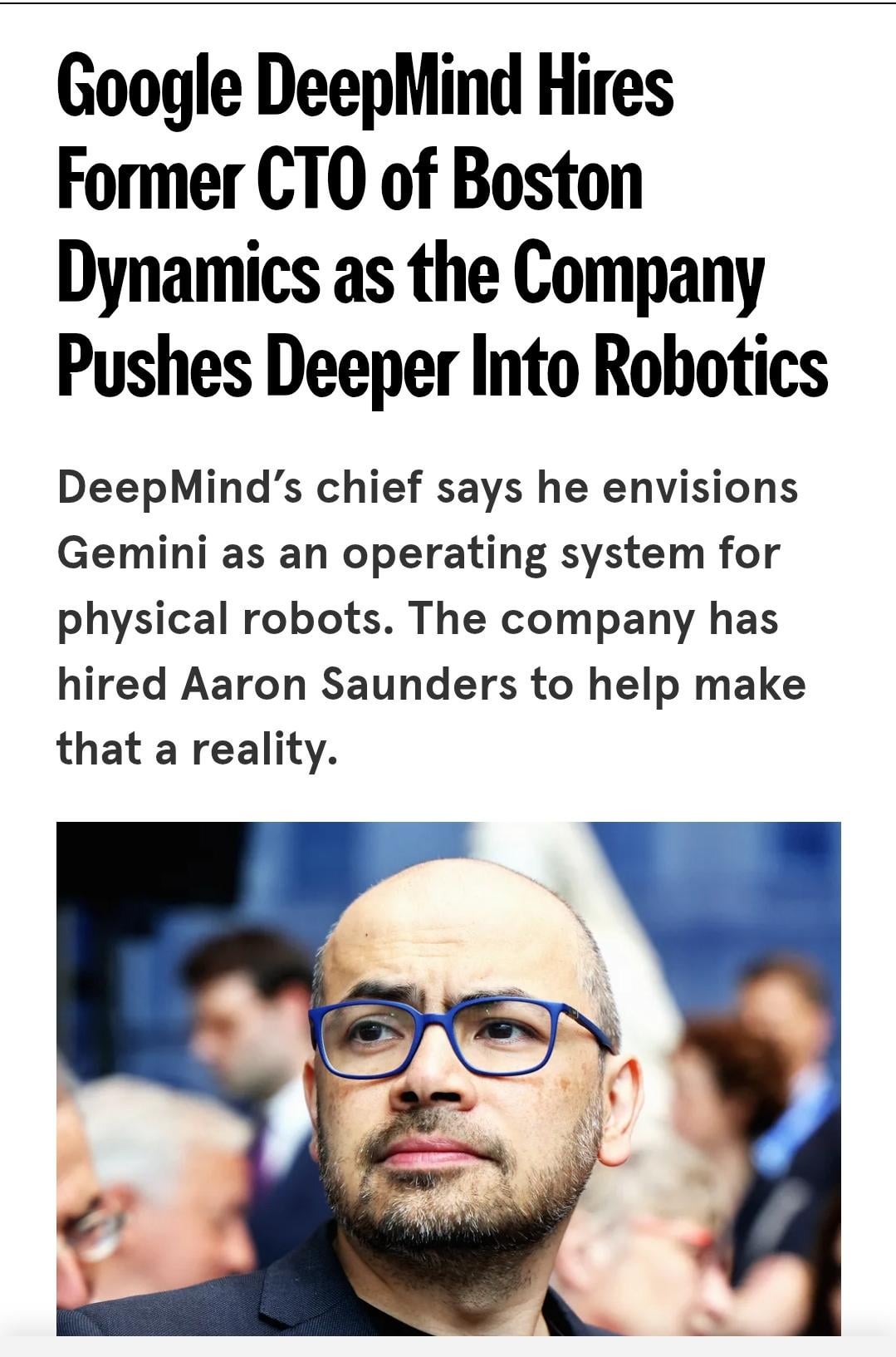 Google DeepMind has hired the former chief technology officer of Boston Dynamics as the company pushes deeper into robotics. Aaron Saunders, who is partly responsible for giving the world back-flipping and dancing machines, joined as the VP of hardware engineering earlier this month.