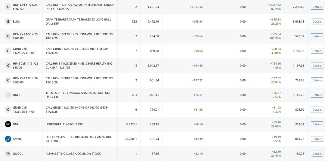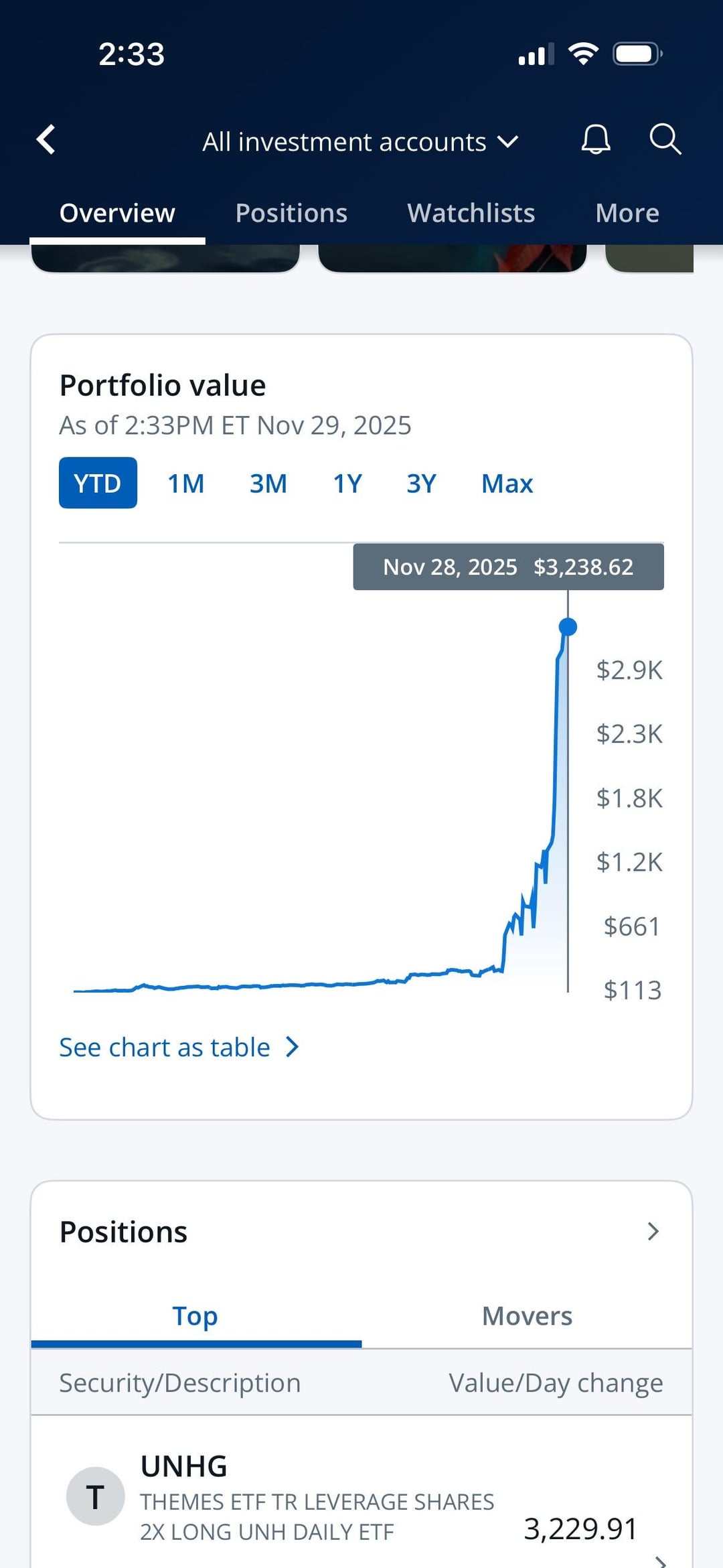 YOLO every single trade in this Roth, so far, $107-> $3200, 2900%+ Currently holding UNHG, All transactions below https://www.reddit.com/gallery/1p9y04e Posted by TheSmartest_idiot