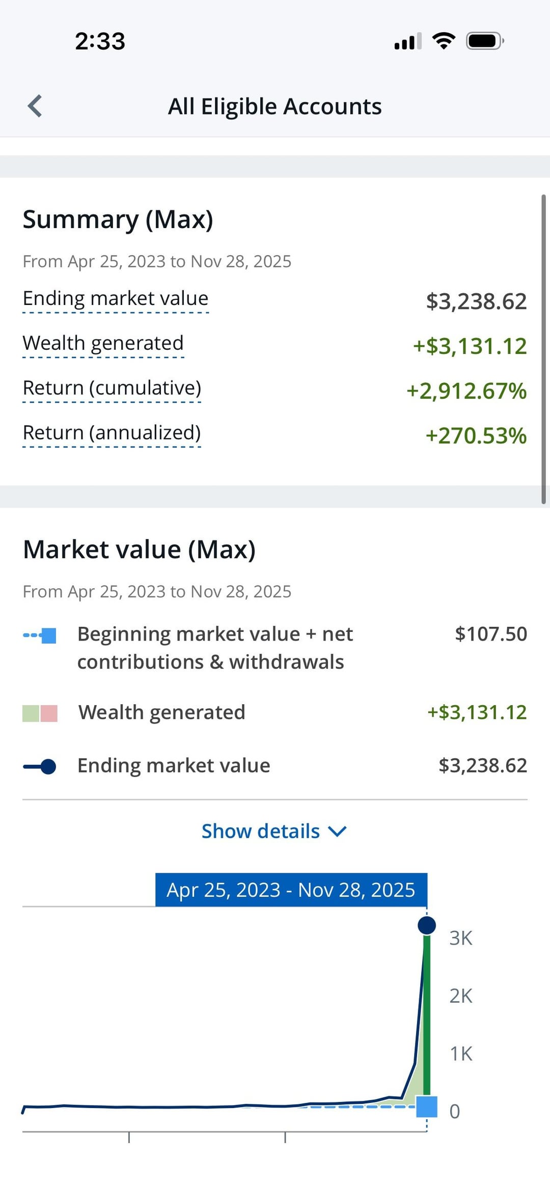 DuckLIT122000 on November 29, 2025 9:14 pm Damn and I felt like a degenerate for actively trading shares in my IRA lmao