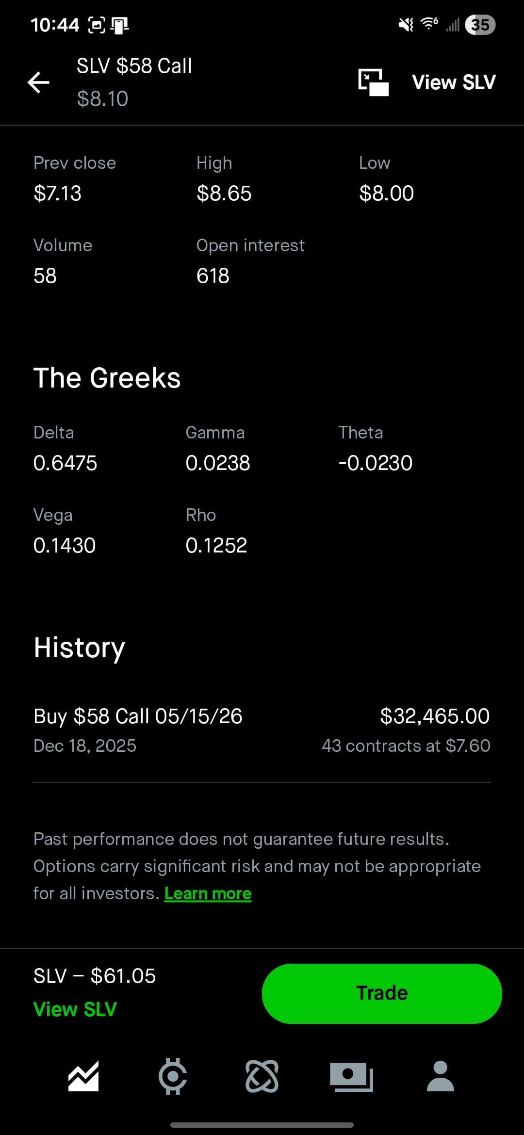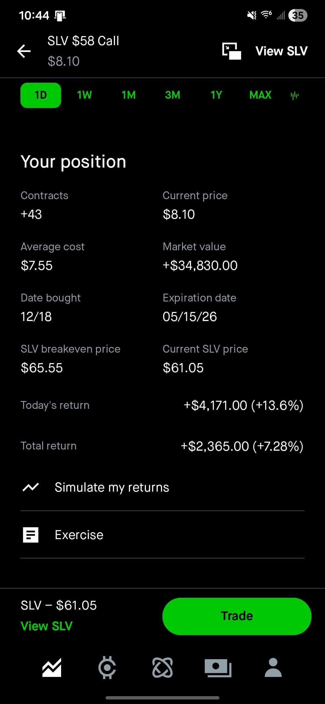 My single $40 call I bought for $200 is almost up 1000%, SLV to the moon