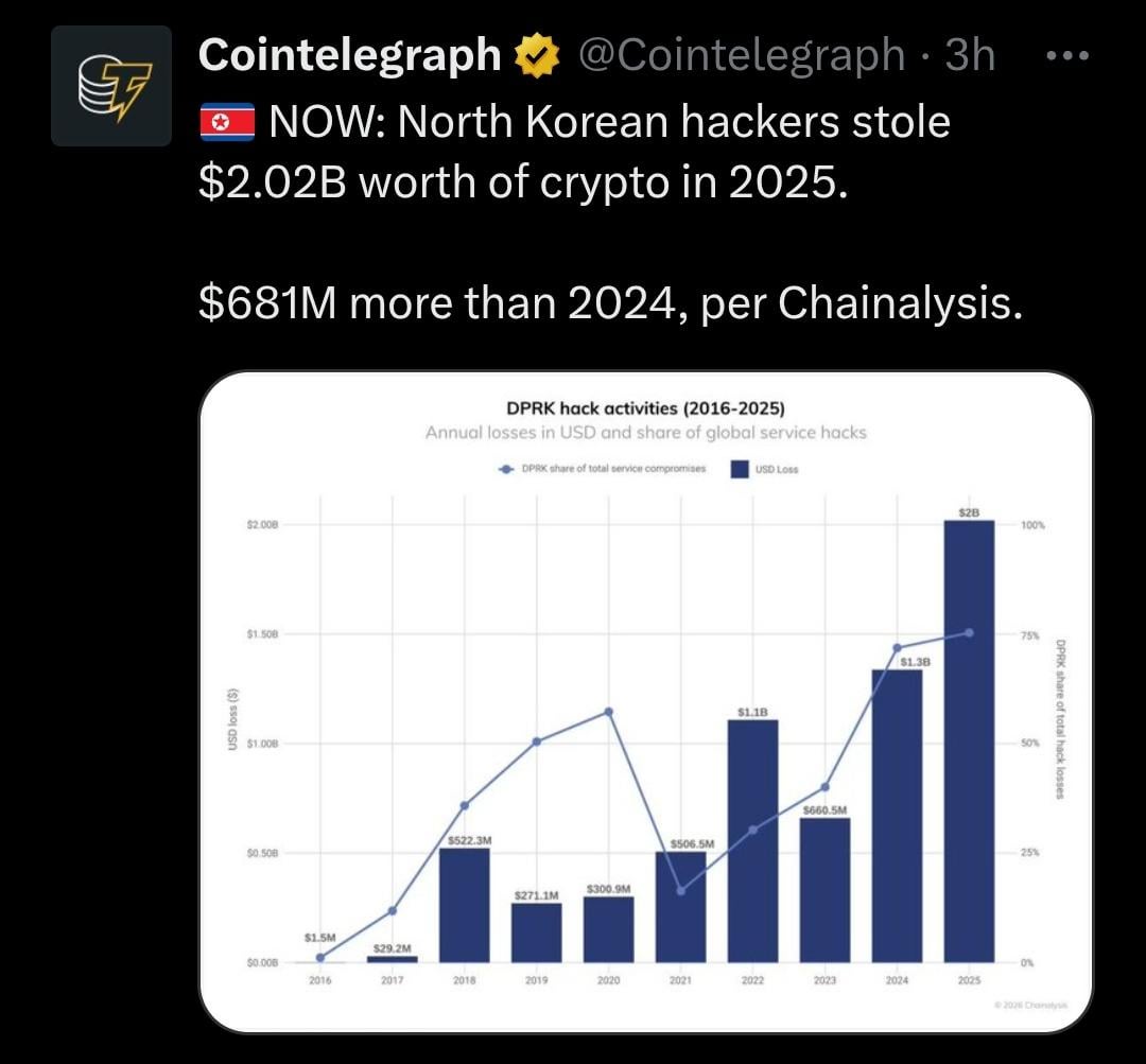 Nortj Korean hackers stole more than $2.0B worth of crypto in 2025