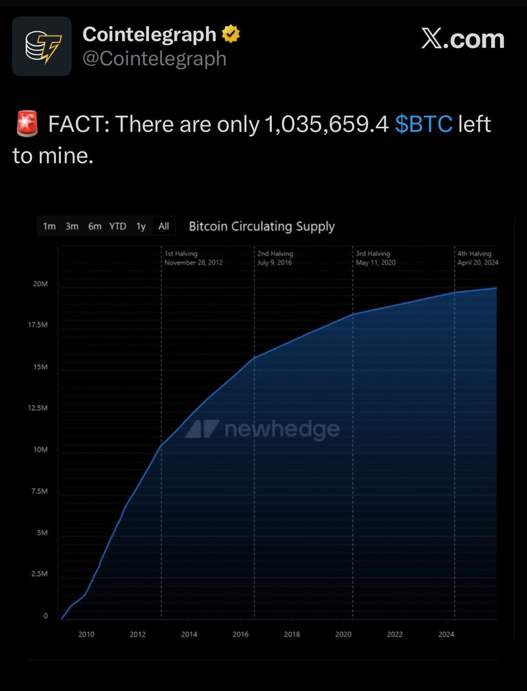There are only 1,035,659.4 BTC left to mine https://www.reddit.com/gallery/1psanor Posted by Next_Statement6145