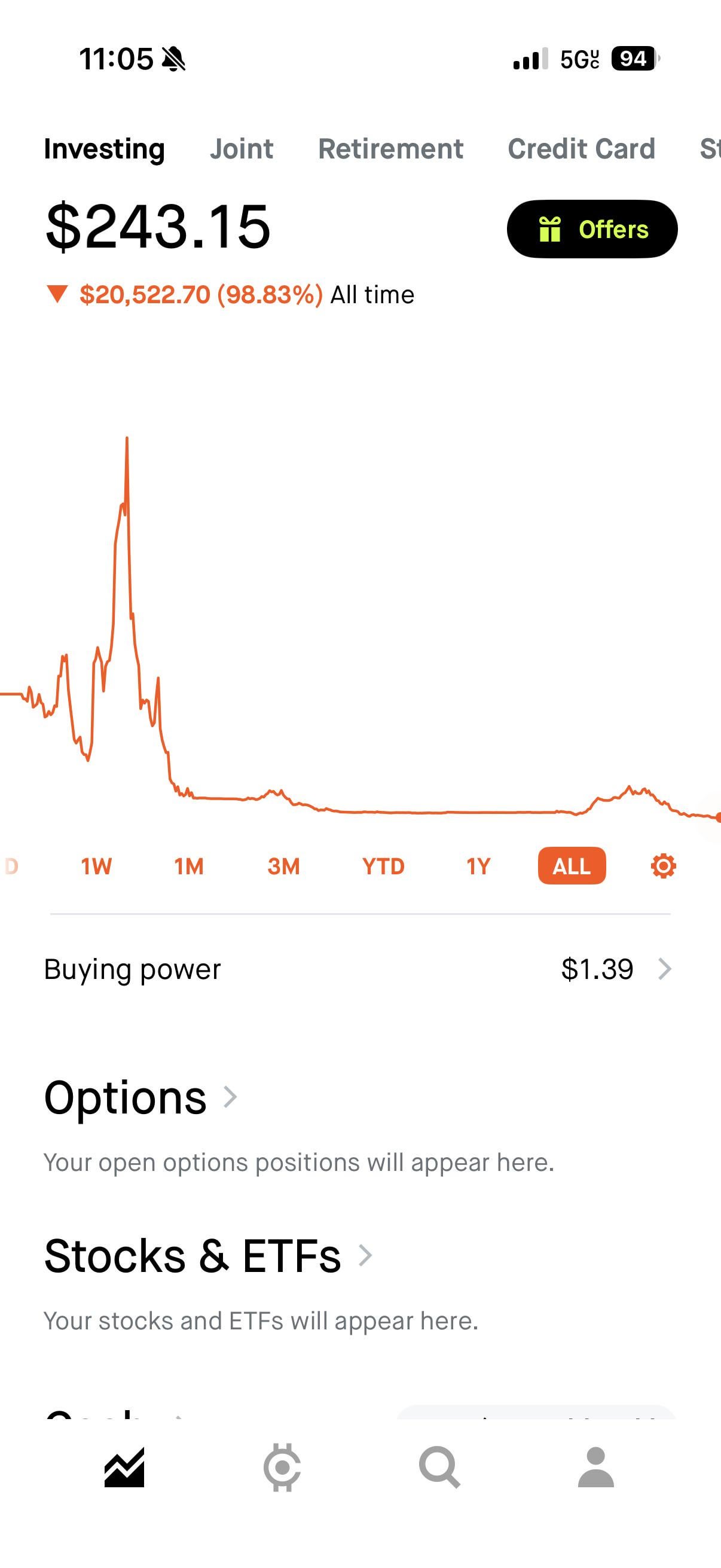 Main_Protection_6074 on December 22, 2025 11:40 pm I was in similar situation, was in negative more than that but in past 3 months I got lucky I guess and got it all back and made some profit. I only had like $200 left too.