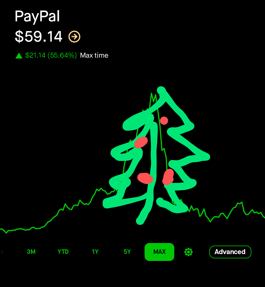 I still think about when I was weighing my options for investing $5k back in 2023. Was trying to decide between PYPL and PLTR. Thank god lol