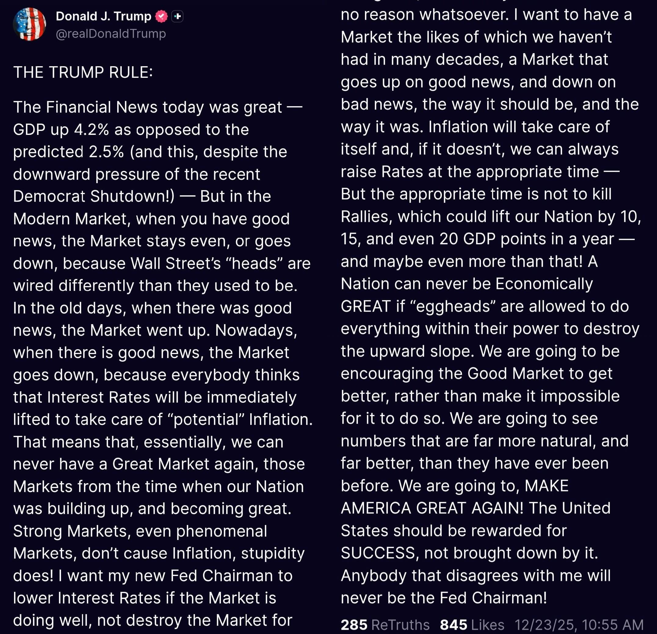 Sounds awfully like he knew that the gdp would come in at 4.3% and he and his buddies made investments expecting it to result in a huge rallyâŚ. but then those didnt pan out and now he is angry and wants to prevent it from happening again.