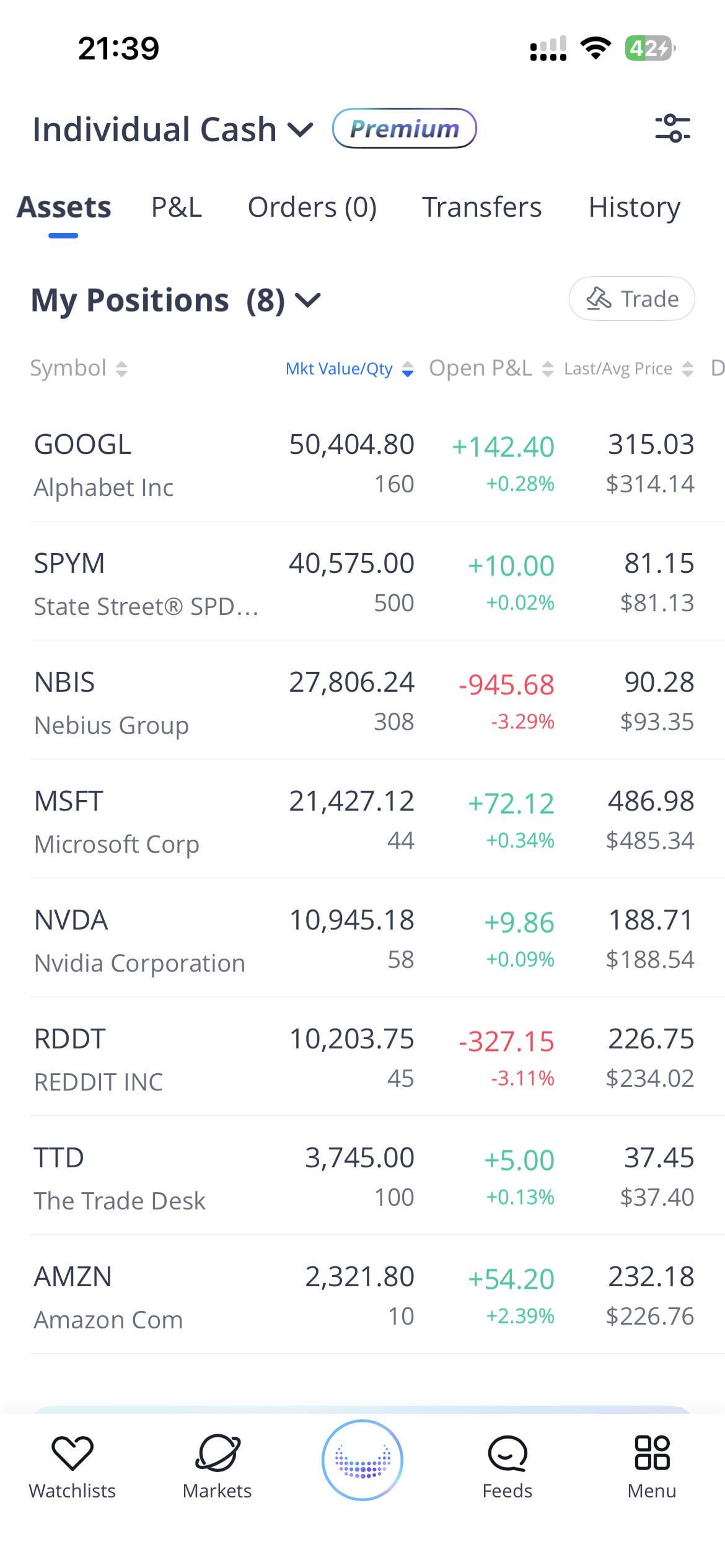 My actual cost basis is lower than shown because I did some profit harvesting. Apart from this screenshot, I have 50k in Meta. That’s it.
