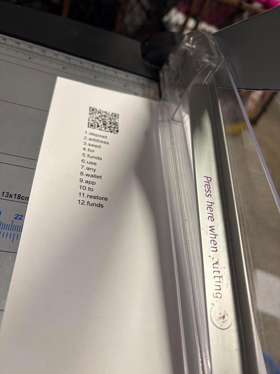 Then cut then fold and fit inside trinket coin now you can load from the qr then open it and unload from seed when needed so I can give to old family and them throw it in there safe untill they need to use it and it not get “hacked”