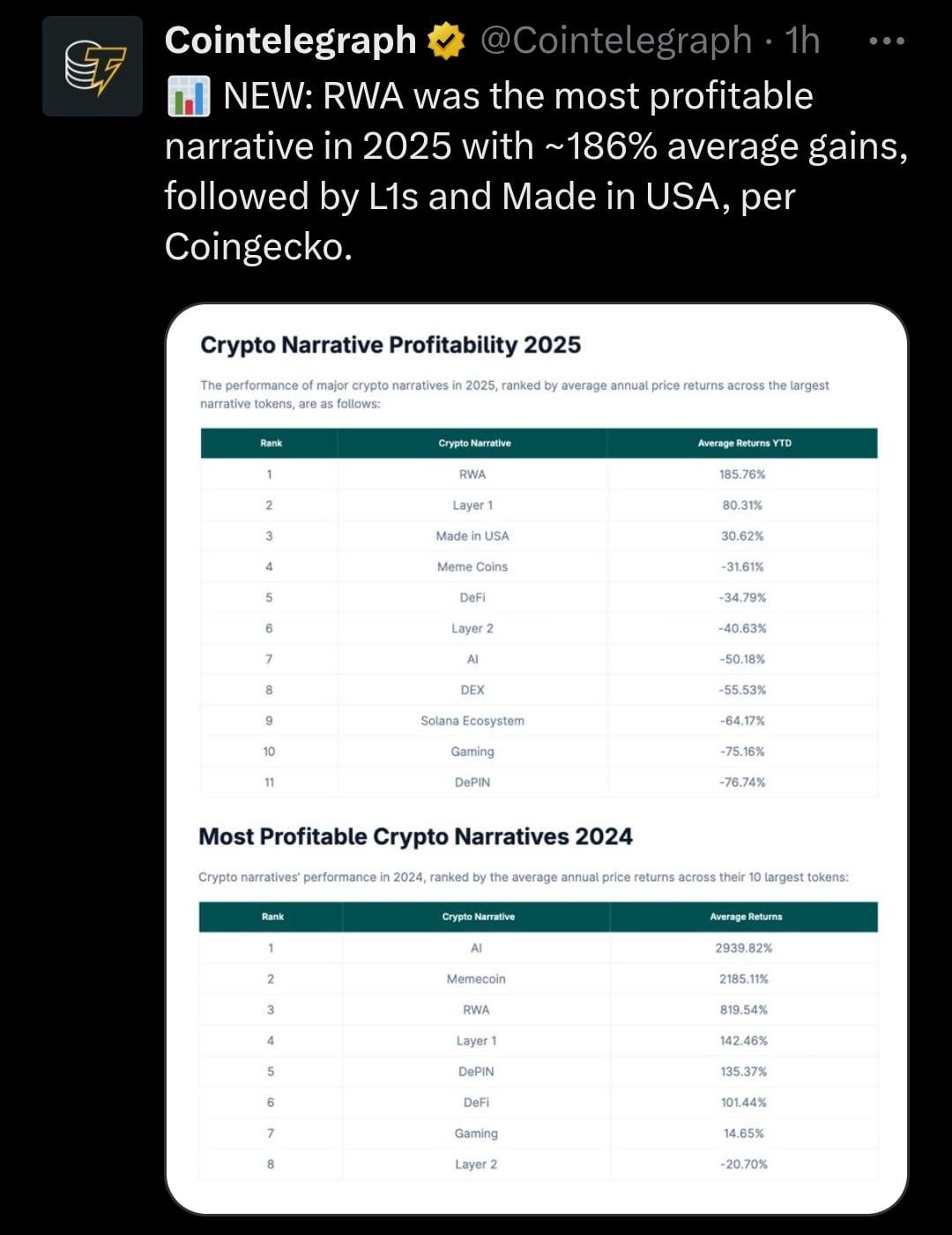 AI was the best narrative in 2024, Rwa in 2025. What will be the best in 2026?