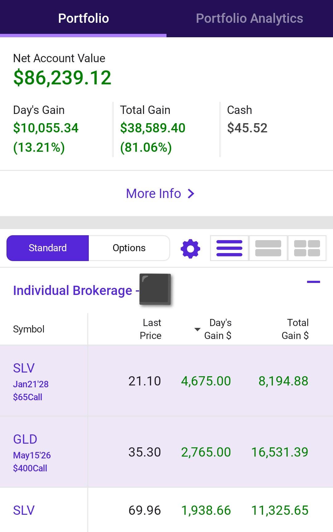Hit my first five figure day gain right now, thanks GLD and SLV.