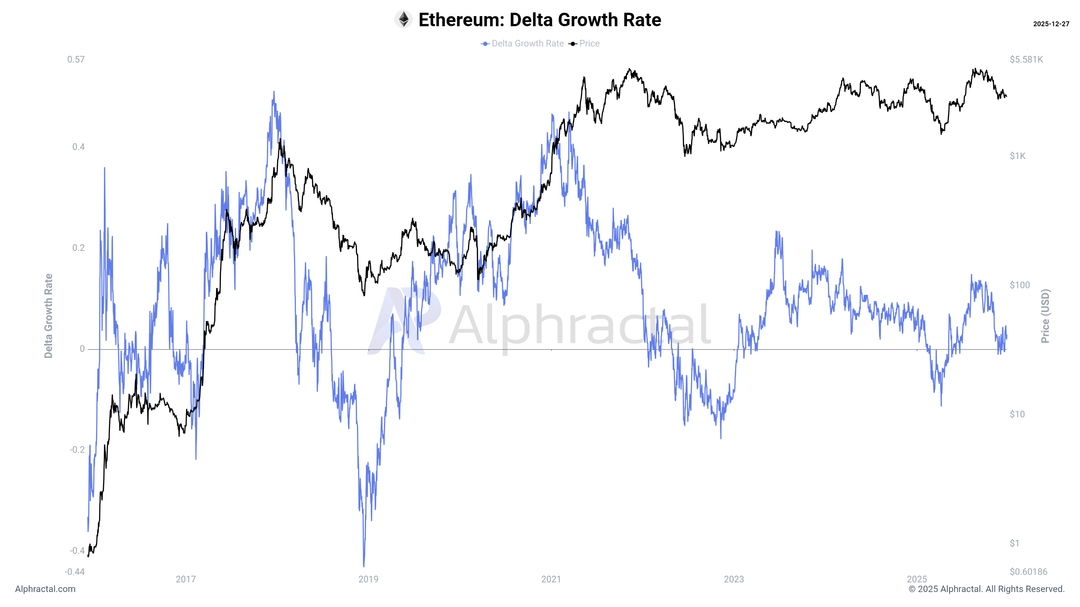 2. The Market Cap Growth Rate, which reflects the real expansion of Ethereum’s market capitalization over time, is also testing a crucial structural support. A breakdown here would signal weakening capital inflows.