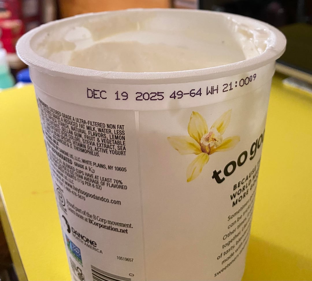 I opened this yogurt around December 17. I haven't eaten that much of it. I took it out of the fridge today, December 27 to serve my dad for breakfast with fruit. I then noticed the expiration date. I looked at the yogurt and did not see any mold. I then gave it a sniff and it smells just like plain yogurt. I then had a spoonful to taste and it still tasted good. What do you guys think? I hate to waste food! Thank you!