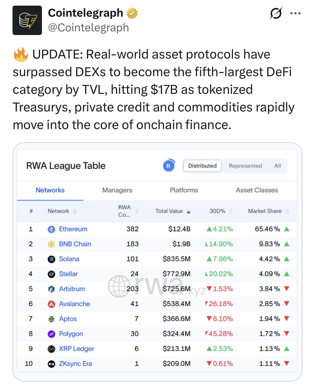 Ethereum dominance in Real-world asset protocols with market share of 65.46%