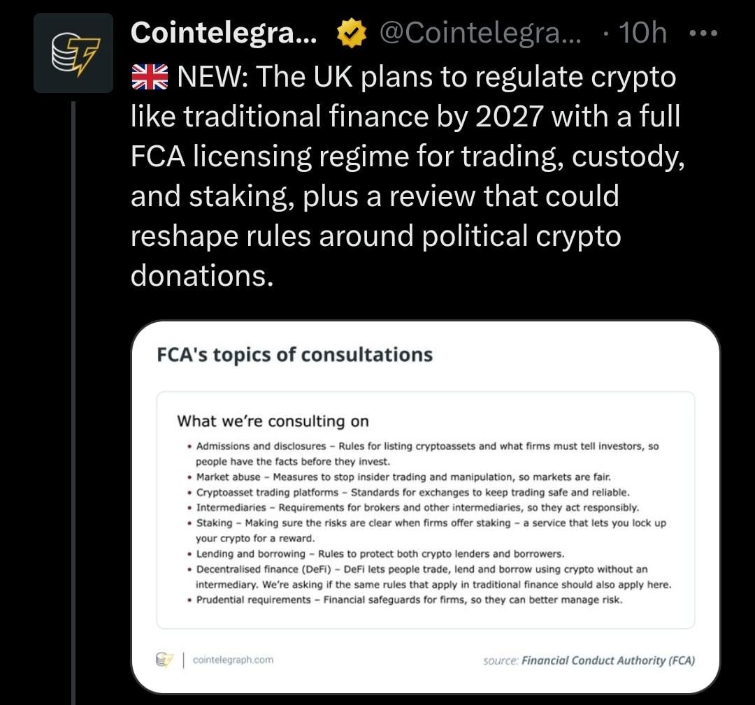 UK plans to regulate crypto like traditional finance by 2027 https://i.redd.it/hld6226ydiag1.jpeg Posted by CymandeTV