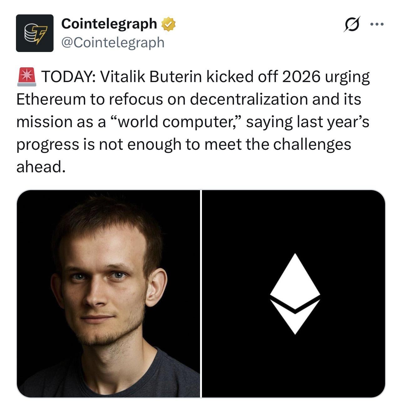 Vitalik Pushes Ethereum to refocus on building decentralized infrastructure and world computer
