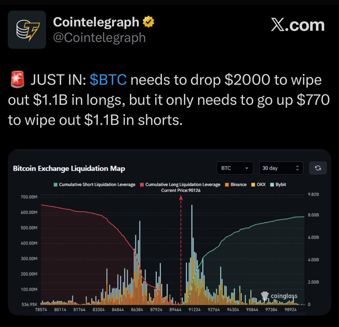 BTC needs to drop $2000 to wipe out $1.1B in longs, but it only needs to go up $770 to wipe out $1.1B in shorts https://www.reddit.com/gallery/1q3u9xg Posted by Next_Statement6145