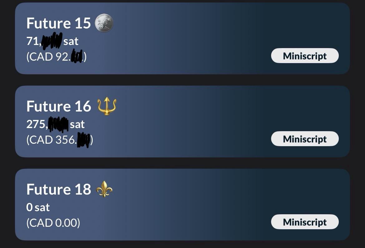 When I turn 15, I plan on putting my “Future 15” funds into future 16 (Consolidating all UTXO’s) then at 16 consolidate to Future 18 (or put big amounts in there before then)