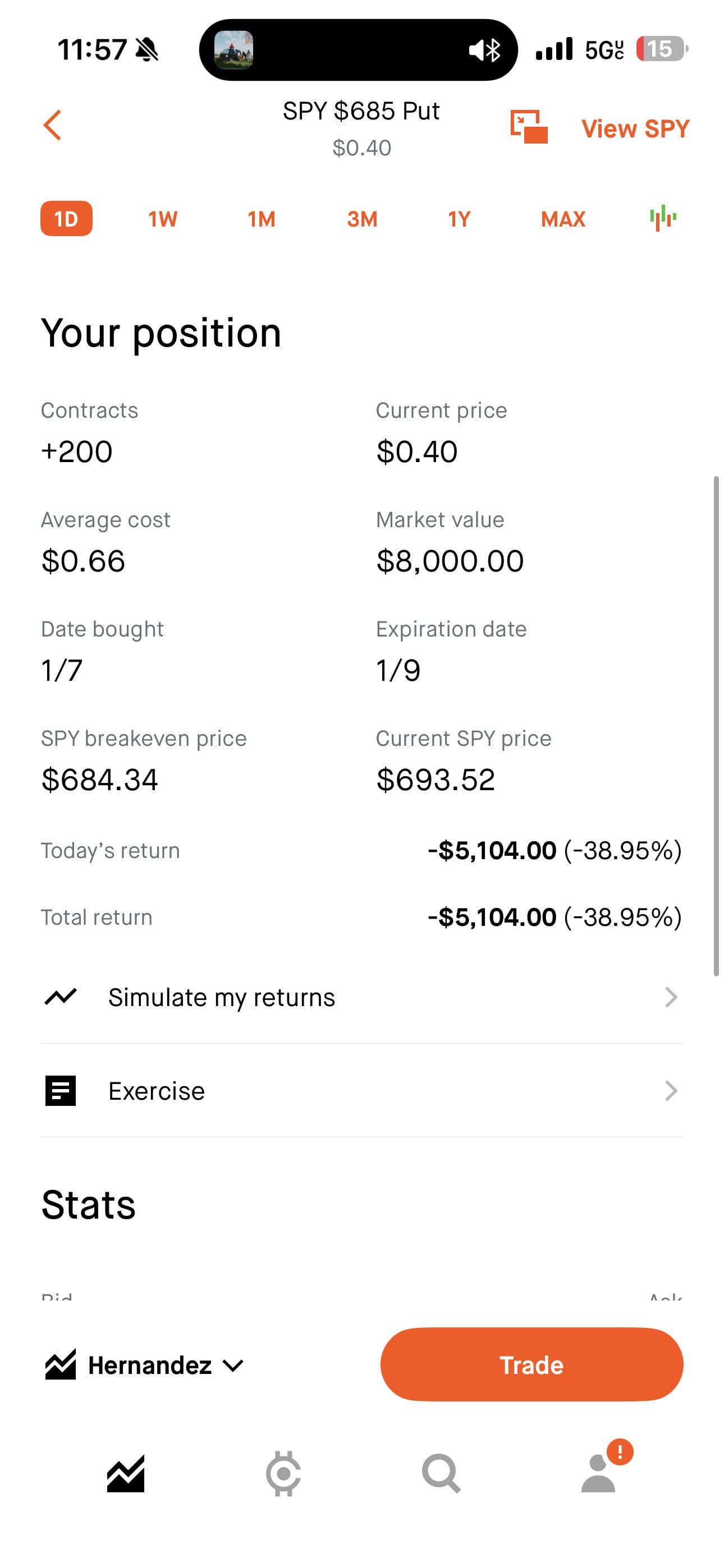 Market has been open less than 3 hours and youโ€™ve lost 40% of your money. Thatโ€™s impressive