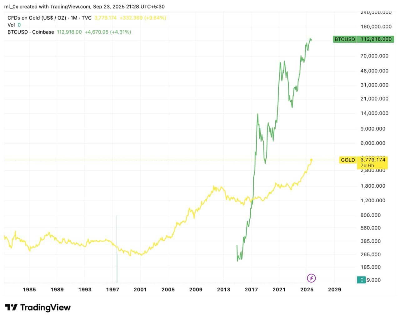 Gold crawls, Bitcoin flies 🚀