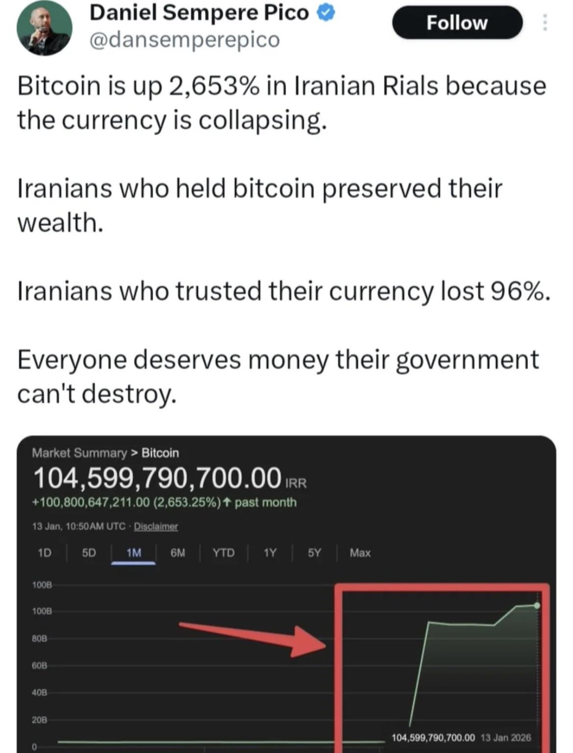 VainTrix on January 14, 2026 2:22 pm Iranians who held anything other than their currency preserved their wealth.