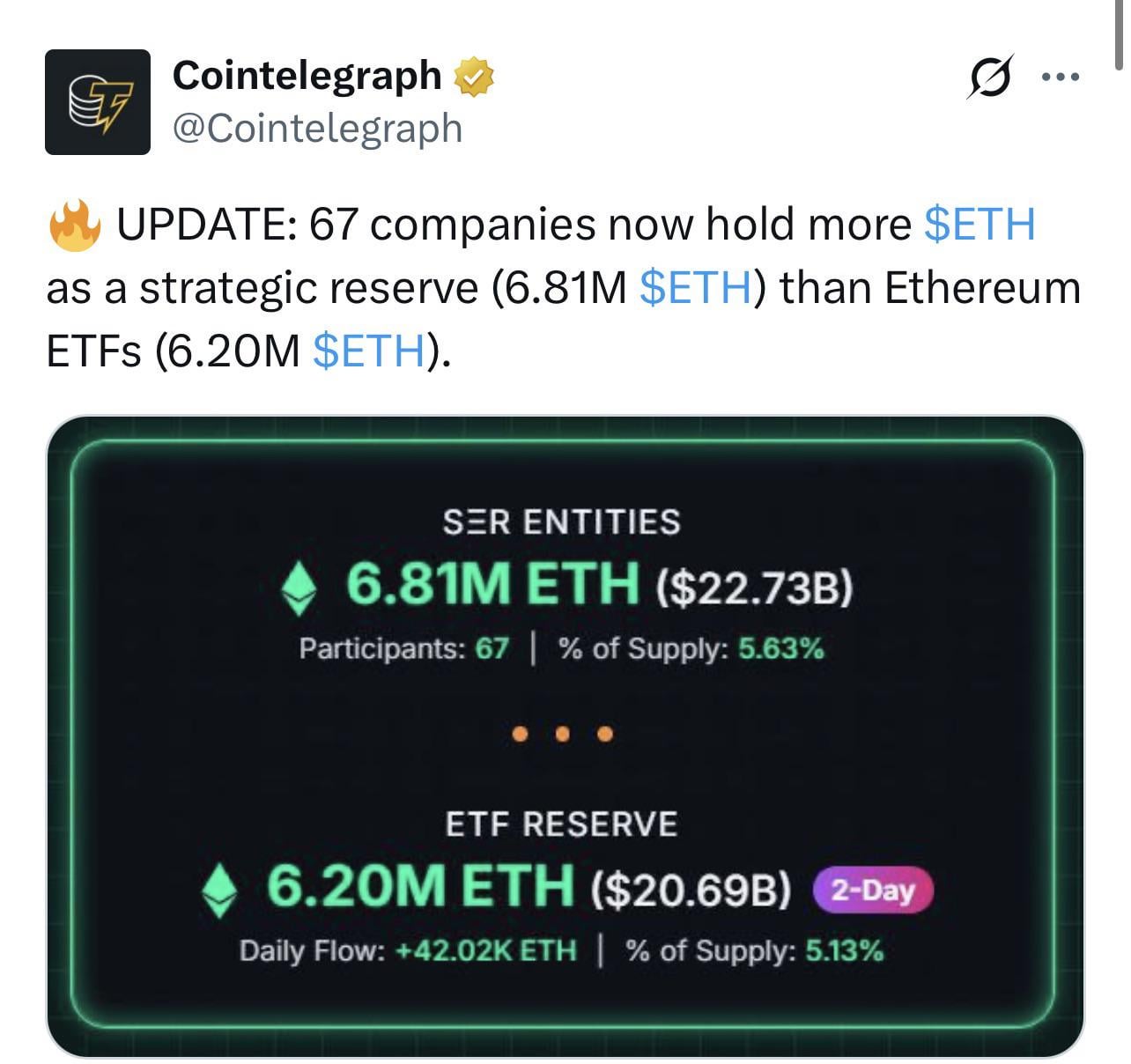 Companies keep accumulating and now hold 6.81M $ETH, more than Ethereum ETFs with total of 6.20M $ETH https://i.redd.it/gohkwv3f6hdg1.jpeg Posted by Creative_Ad7831
