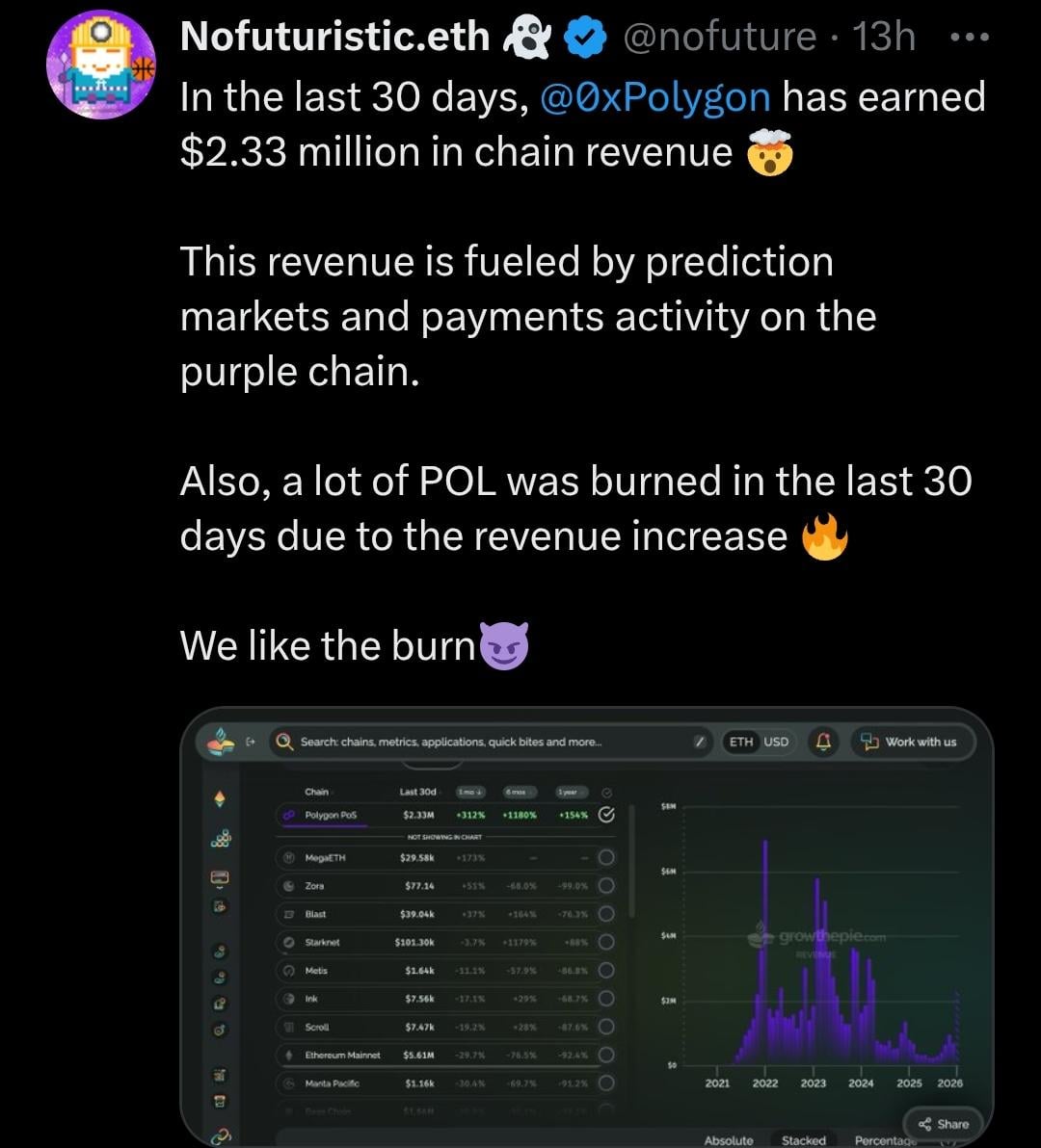 POL has earned $2.33 million in chain revenue in the last 30 days https://i.redd.it/wtq5yrm3pxdg1.jpeg Posted by CymandeTV