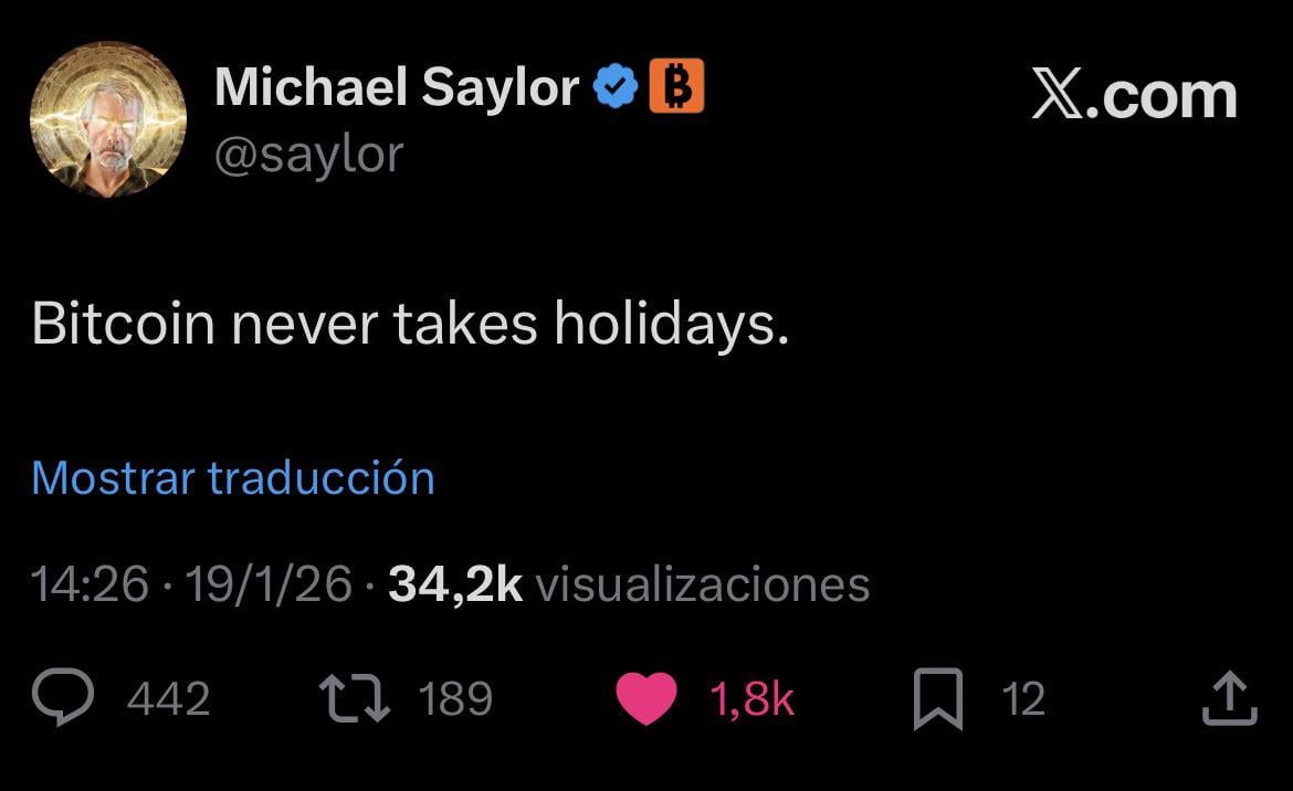 Saylor reminds us with this tweet, clearly alluding to the fact that Wall Street is closed today for the Martin Luther King Jr. holiday.