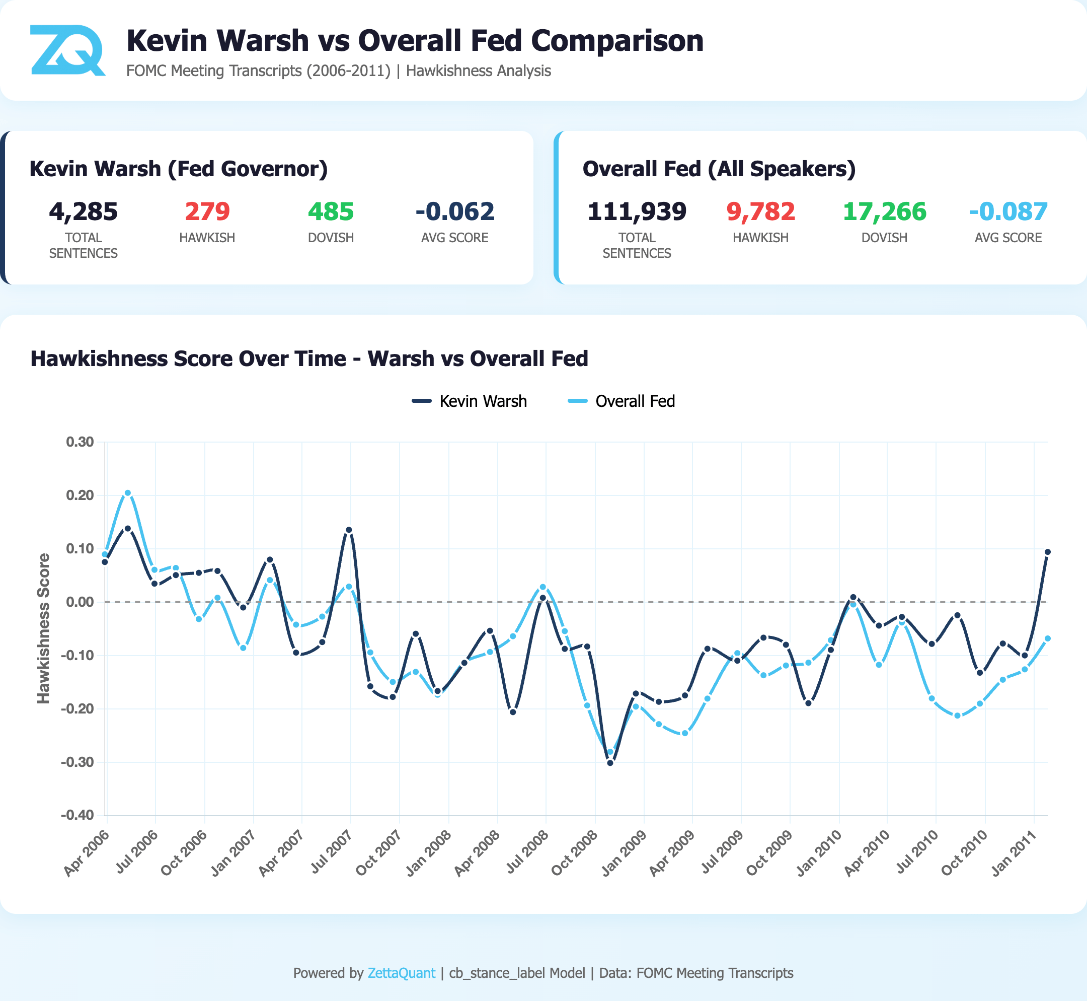 Analysis based on ~40 FOMC meeting transcripts from 2006–2011, covering the period when Kevin Warsh served as a Fed Governor, including the Global Financial Crisis.