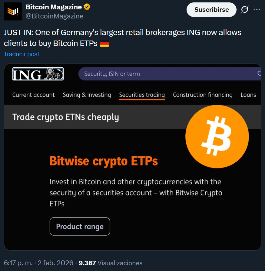 One of Germany’s largest retail brokerages ING now allows clients to buy Bitcoin ETPs https://i.redd.it/xqxndfq0c4hg1.png Posted by kirtash93