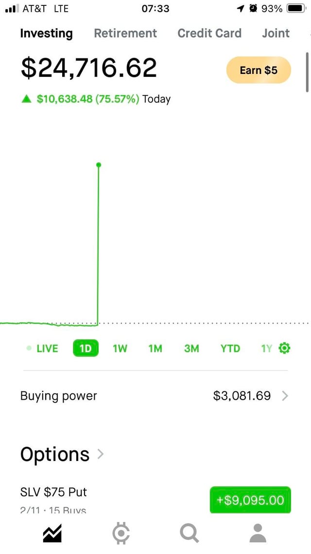 Sold SLV PUT cause it started to go south on me quick and bought a GOOG call with the left over $. Safe to say, today is not a great day