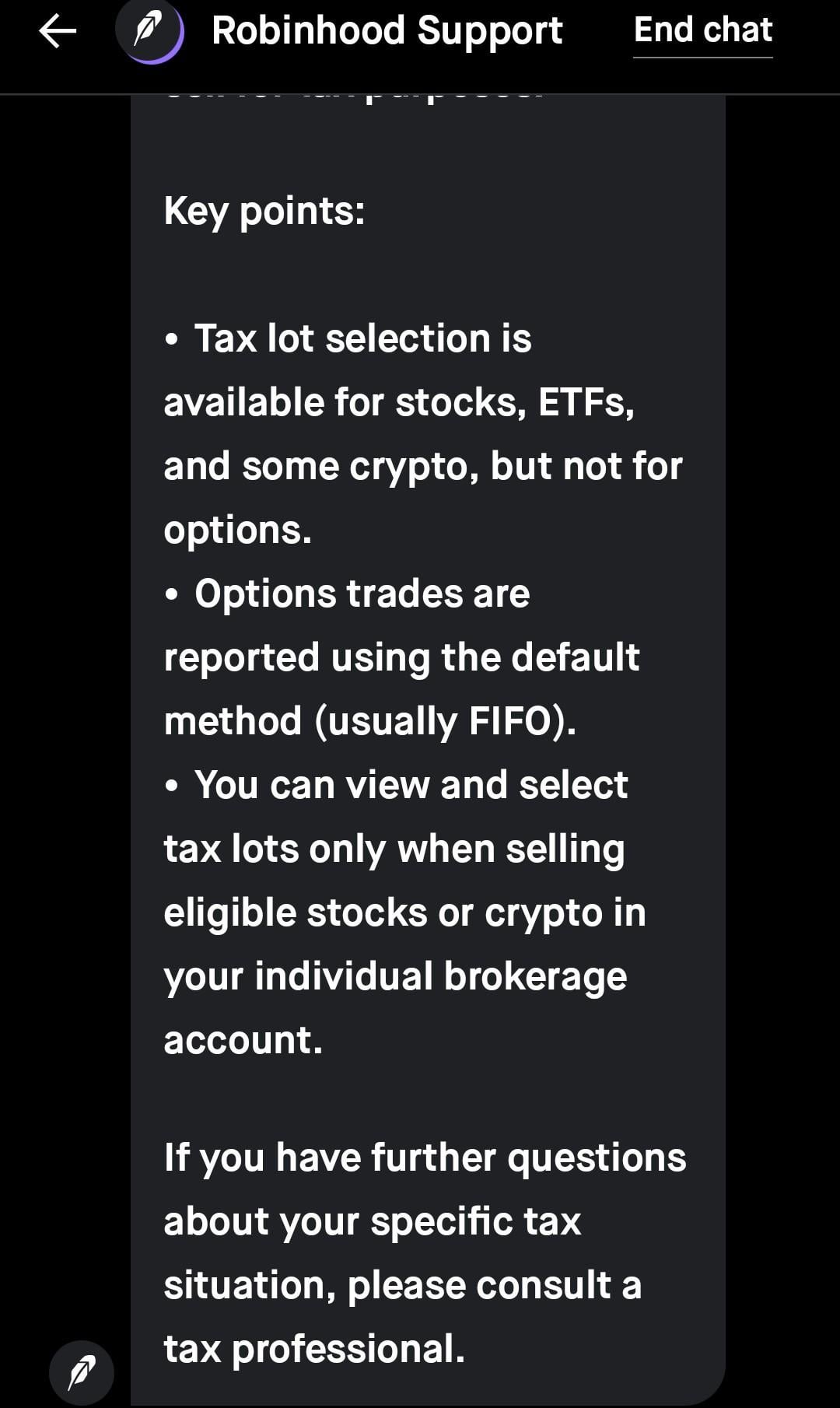 Specifically regarding options, at the moment Charles Schwab allows the selection of which shares are sold. Robinhood however does not.
