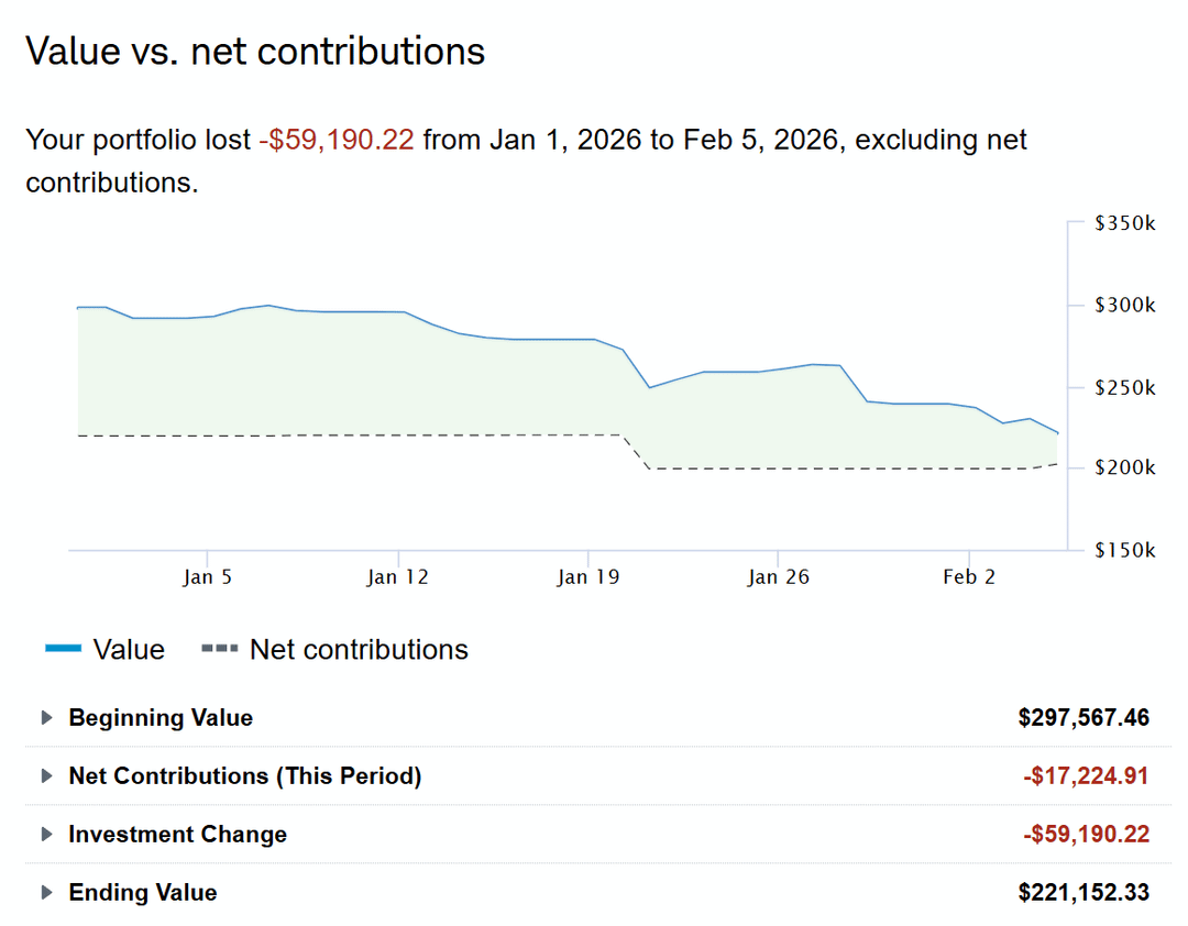TheGeoGod on February 6, 2026 3:57 pm Feel your pain. Shopify is destroying me. Down 20k on that alone