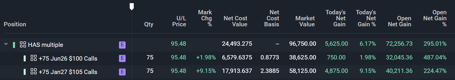 Big loss driver of the past year in the stock was the Liberation Day threat of tariffs to the core toy business. That's much less of a concern now that the random tariff rates are stabilized, and MTG has become the revenue and growth driver.