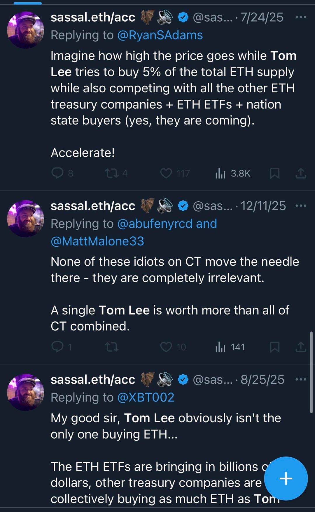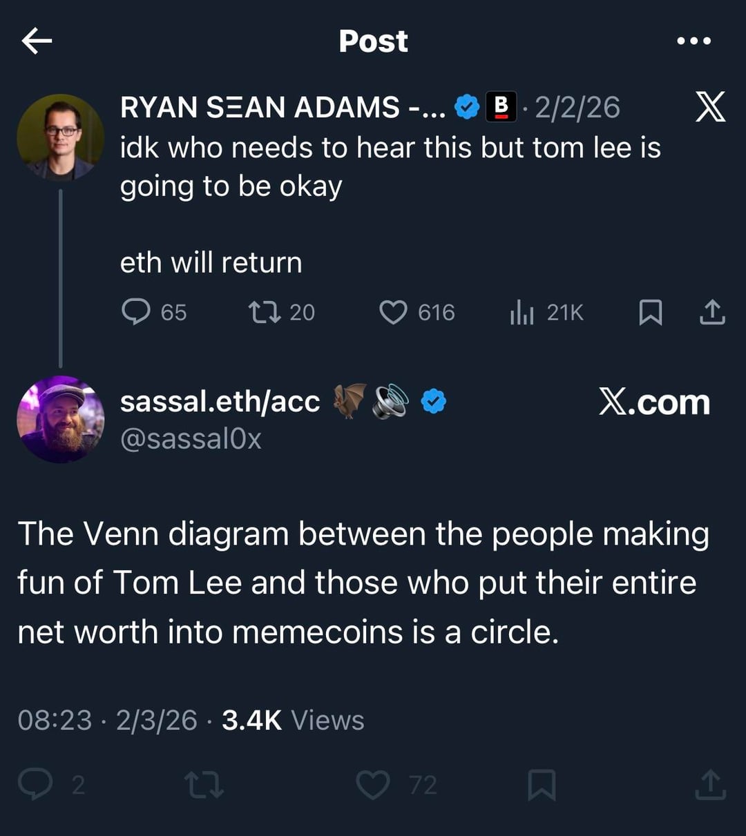 Should have sold 4K eth in hindsight when ETH heads are all bullposting tom lee buying ethereum https://www.reddit.com/gallery/1r3z6vi Posted by blackpaws92