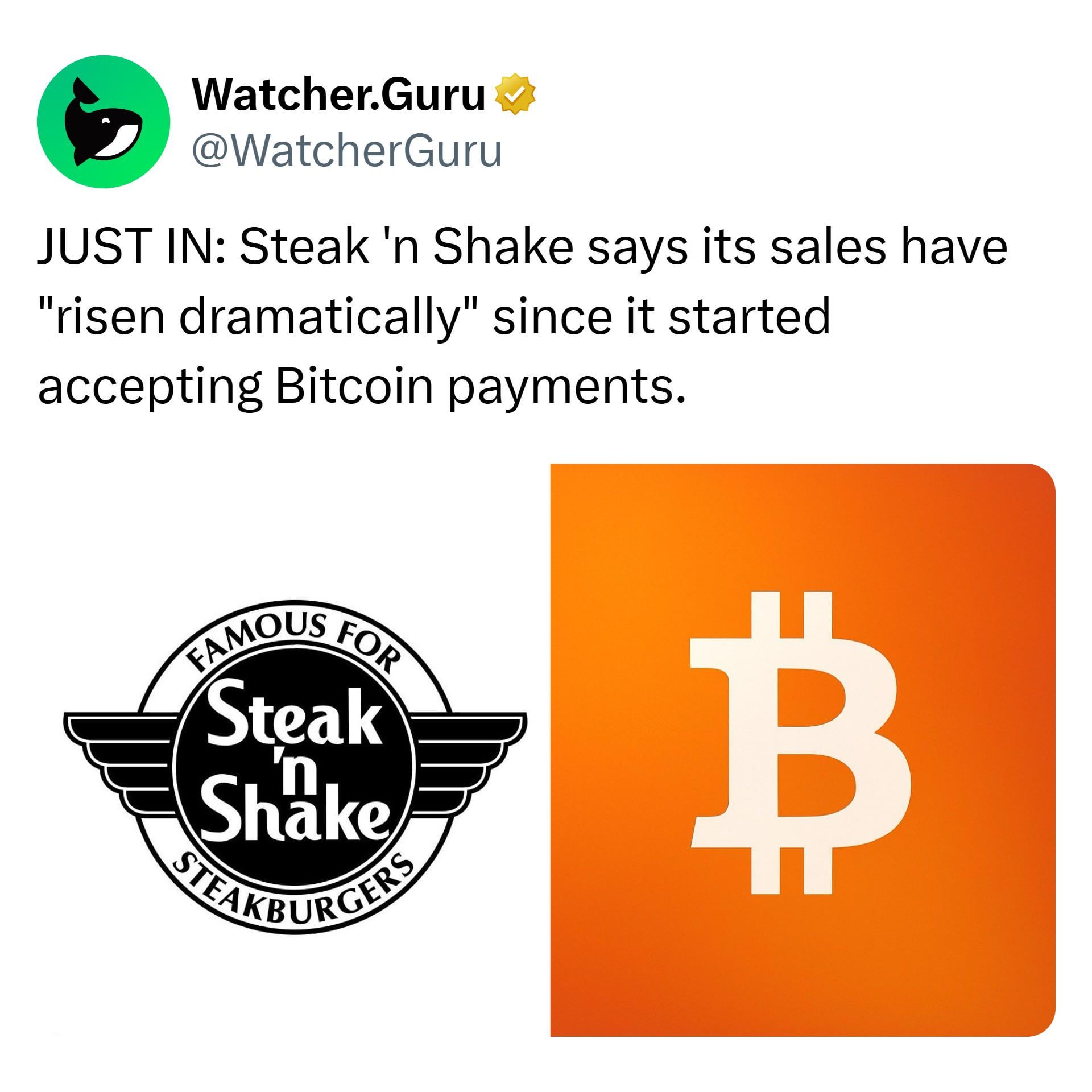 Steak ‘n Shake attributes sales increase to accepting Bitcoin payments https://i.redd.it/nrncpi0d1xjg1.jpeg Posted by WatcherGuru