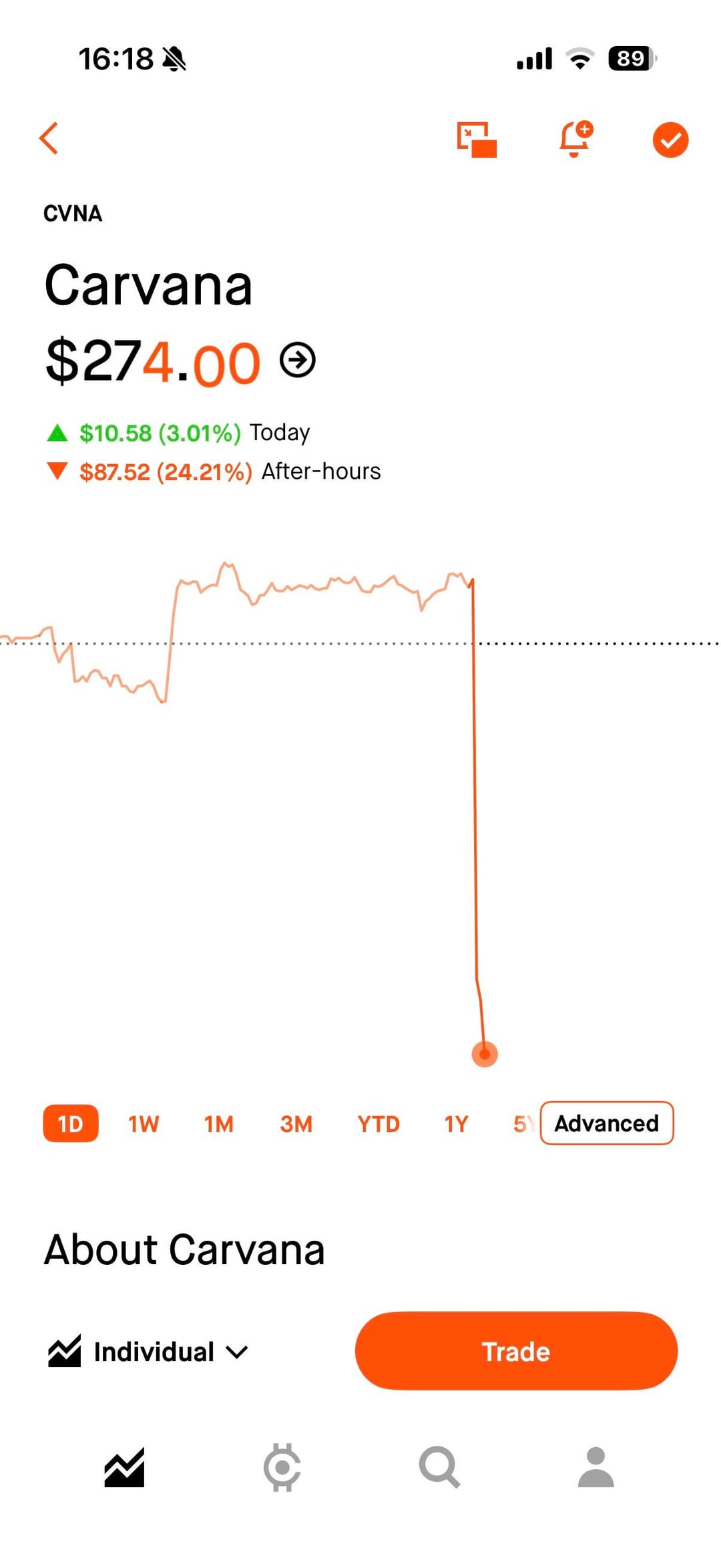 CVNA down 24% after hours. Someone’s about to learn what “liquidity event” really means.