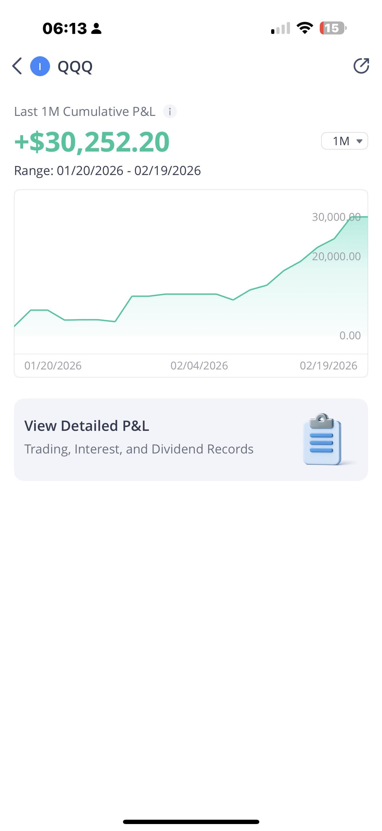 After finding myself in a rather significant hole, what did I do? I continued to trade QQQ ODTE’s. Yesterday evening while playing around on webull I saw this month I made $30k on QQQ calls and puts being a complete regard. After looking at my journey of trading qqq. On 1/14/26 I was down 6.3k.