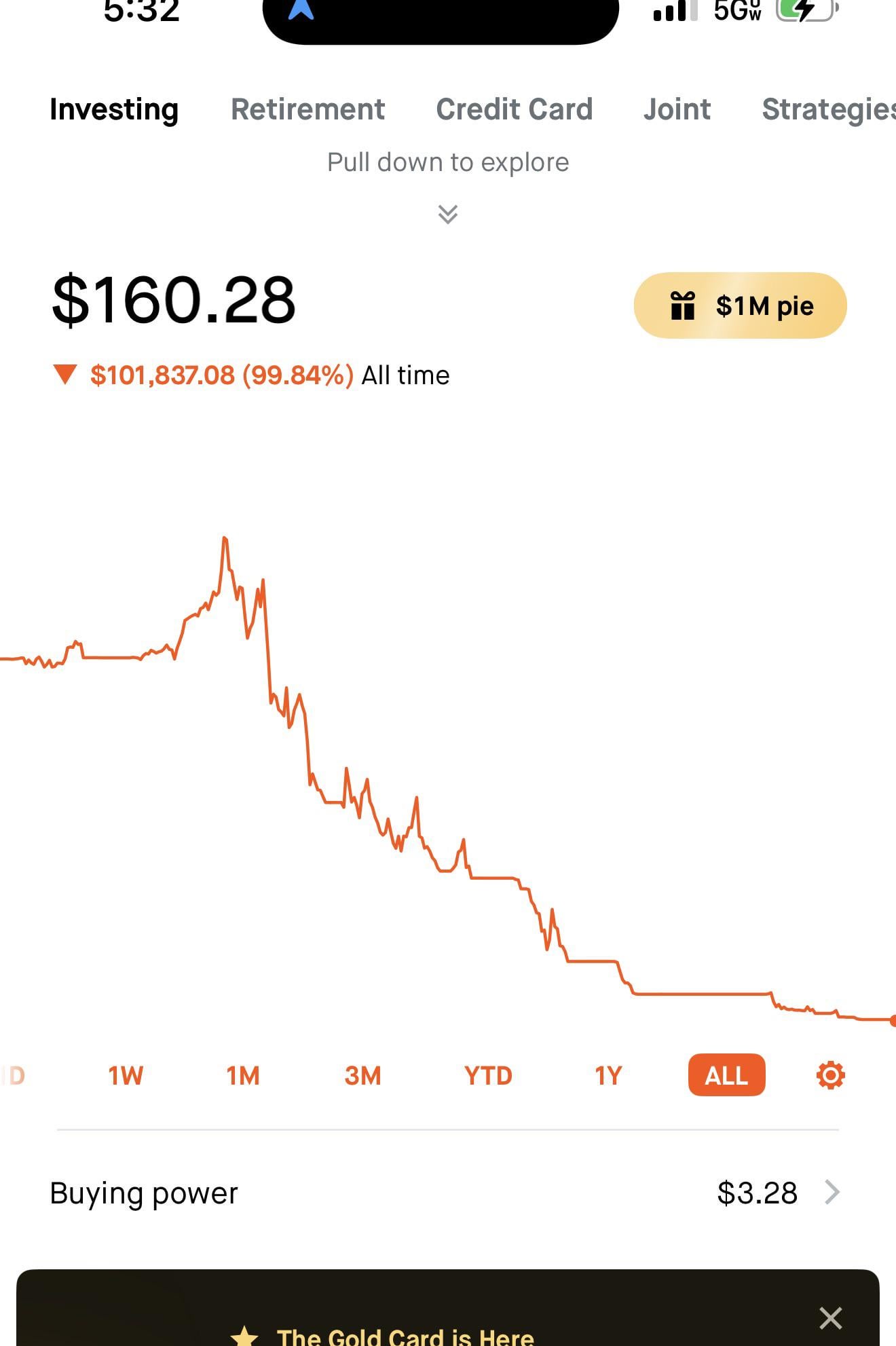 I’m just full time doordash driver and this was all i had under my name. I feel like market always moves against my position. Am i wrong for wanting to have 1 million on my account so i can retire early? I’m tired of delivering food day and night.