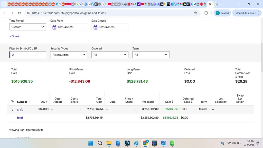TLDR: don't use Etrade. They increased my position by 21100 shares of U and added a fake 530k realized gain while my account balance decreased due to their system error and said errors and glitches happen all the time and they aren't liable. Please help