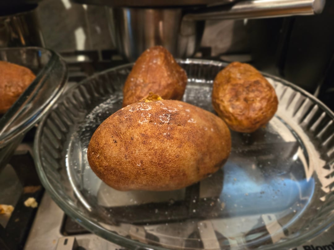 I’m not following. But a 10lb bag of russets from costco is around $$8-$10. I couldn’t bring myself to buy 4 potatoes if I could get an entire bag. Twice baked potatoes are just as much work to make 1 as 10. Plus they freeze fantastic.